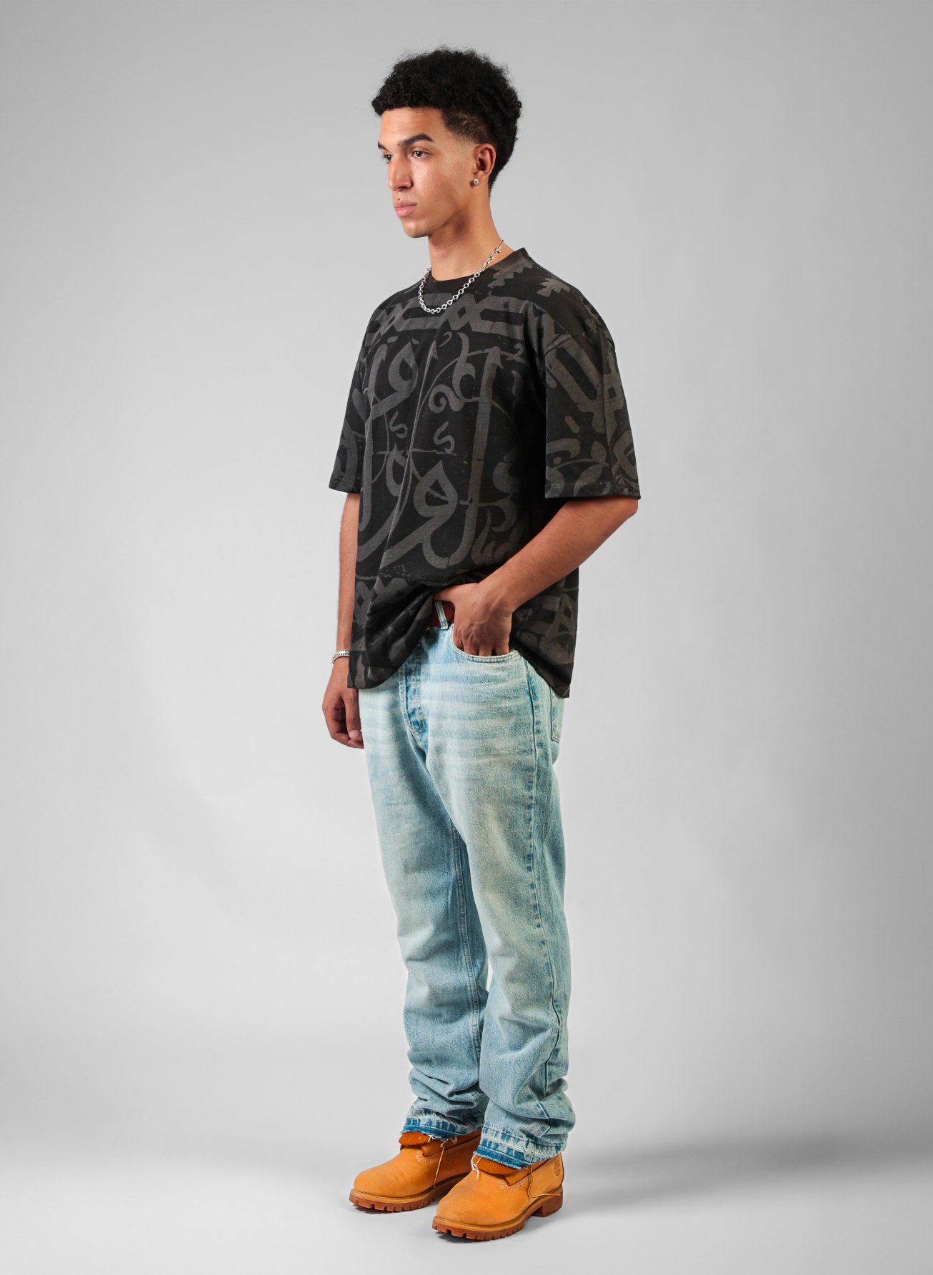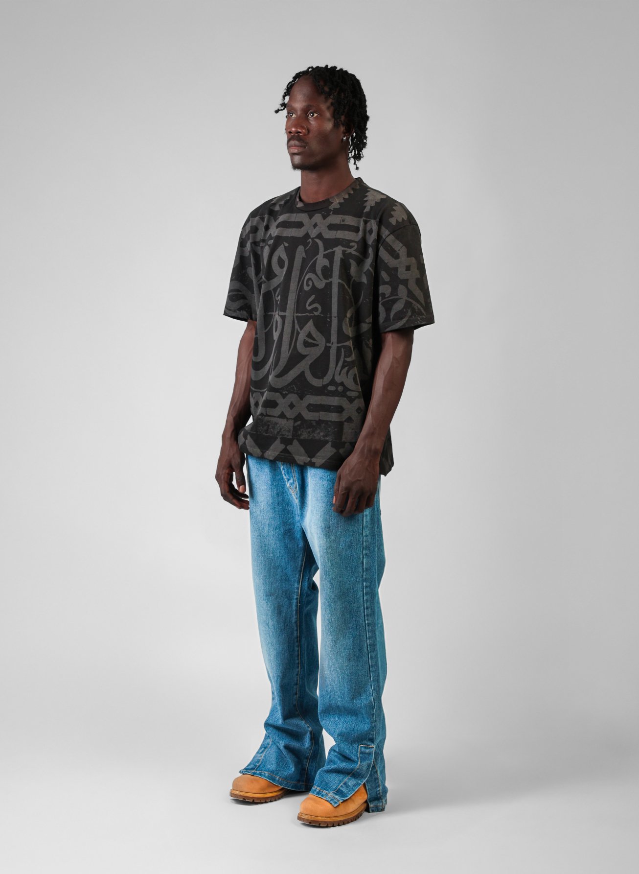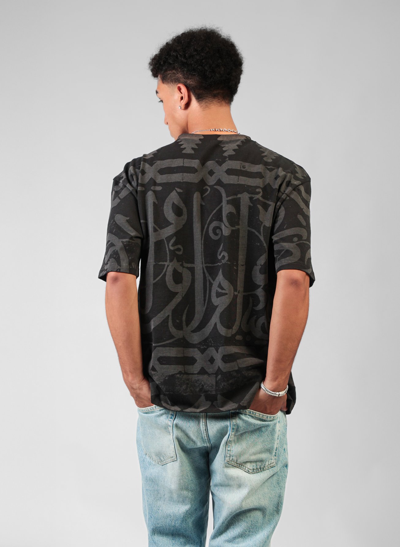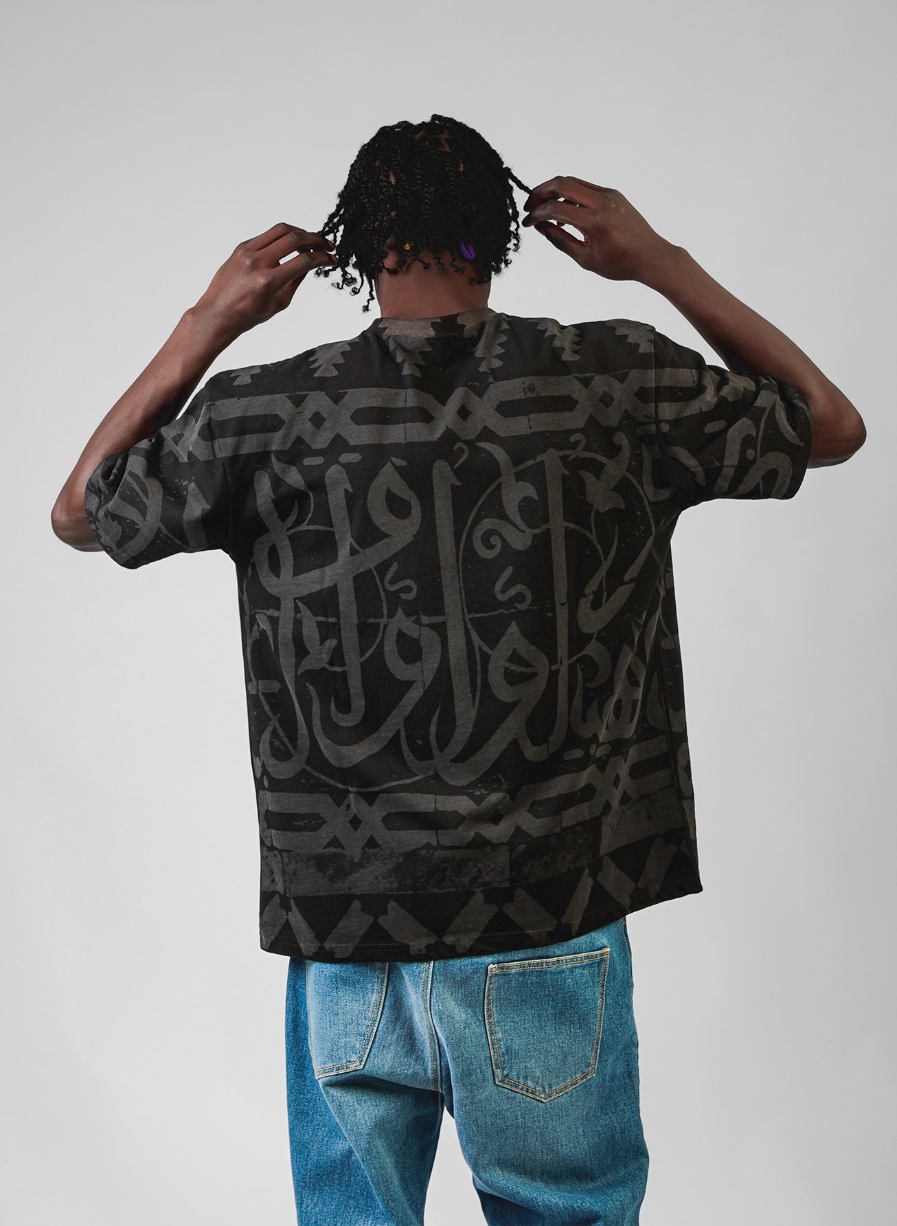 The KALIMA TEE speaks without sound. Covered in bold Arabic calligraphy, it honors our language as both art and resistance — a symbol of who we are and where we come from.